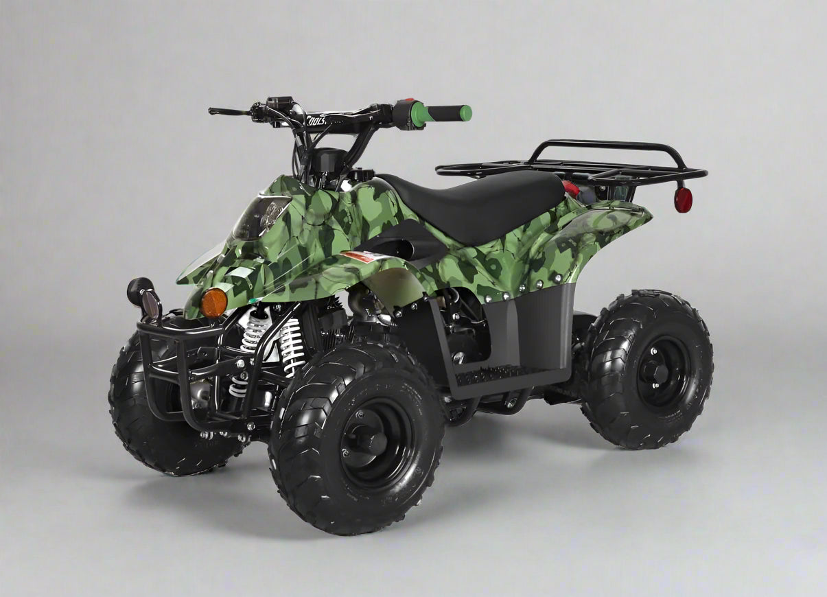 Introducing our newest arrival at Belmonte Bikes, the Mocassin 110cc quad ATV! Featuring a user-friendly fully automatic transmission, riders of all ages can easily hop on and set off on their adventure. Tailored for young riders between the ages of 4 and 11, it guarantees an exhilarating and secure experience a Loaded with safety features, the Mocassin ATV prioritizes a worry-free ride. Thanks to its Speed Governor, you have the flexibility to set speeds as low as 5mph or unleash its full potential at 35mph. Moreover, the ATV comes with a remote Kill switch, providing you with the peace of mind to instantly turn off the engine from up to 60 feet away, ensuring safety even while the kids are out exploring.